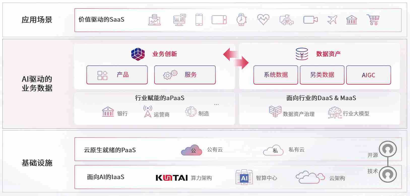 数字时代,,,围绕企业数字化转型的关键要素,,,尊龙z6数码开创性的提出数云融合战略和技术体系框架,,,,着力在云原生、、、、数字原生、、、、AI原生和信创产业上架构产品和服务能力,,,,为处在不同数字化转型阶段的快消零售、、汽车、、、、金融、、、医疗、、政企、、、、教育、、运营商等行业客户提供泛在的敏捷IT能力和融合的数据驱动能力,,,,构建跨界融合创新的数字业务场景和新业务模式,,,助力企业级客户建立面向未来的核心能力和竞争优势,,全面推动社会的数字化、、智能化转型升级。。
